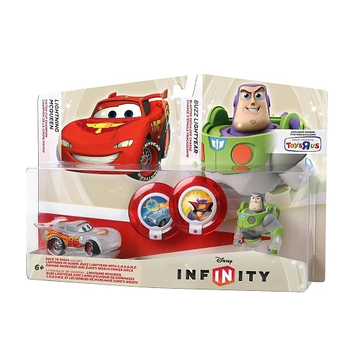 Race to Space | Pack of Crystal Lightning McQueen and Crystal Buzz Lightyear, along with 2 exclusive Power Discs. | Figure, Power Disc |